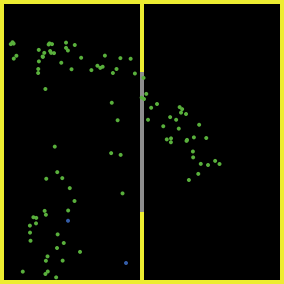 ONE SIDE: all the particles are created in the left side of the box evenly distributed.