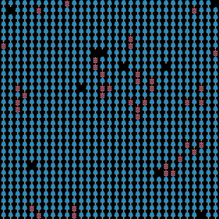 This is a model of a simple ecosystem of two species of trees that compete for space in a forest canopy. Tabonuco Yagrumo Hybrid is different from Tabonuco Yagrumo in that the competition for space is explicitly modeled using turtles and patches, as opposed to being modeled as a relationship between stocks in the System Dynamics Modeler. It is intended to be a simple example of how the two approaches can be combined into a hybrid model, and its behavior is similar to the non-hybrid version.