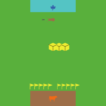breed [ Jogador ] breed [ capim ] breed [ obstacles ] breed [ Inimigo ] breed [ Bandeira ] breed [caixa] breed [extra] breed [boss] globals [ name level score nextLevel lives aux aux3 ] to setup ;; (for this model to work with NetLogo's new plotting features, ;; __clear-all-and-reset-ticks should be replaced with clear-all at ;; the beginning of your setup procedure and reset-ticks at the end ;; of the procedure.) __clear-all-and-reset-ticks set level 1 set nextLevel 10 set score 0 set lives 3 set aux 11 set aux3 1 ask patches [ set pcolor green ] ask patches with [ pxcor > -8 and pxcor < 8 and pycor > 13 ] [ set pcolor cyan ] ask patches with [ pxcor > -8 and pxcor < 8 and pycor < -12 ] [ set pcolor brown ] create-capim 1 [ set shape "leaf" set size 2 set color blue setxy 0 max-pycor - 2 ] create-Jogador 1 [ set shape "cow" set size 3 set color orange setxy 0 min-pycor + 2 ] create-Inimigo 1 [ set shape "bug" setxy 0 max-pycor - 6 set size 3 set color brown set heading 90 ] create-Bandeira 1 [ set shape "flag" setxy 2 max-pycor - 28 set size 2 set color yellow set heading 90 ] create-Bandeira 2 [ set shape "flag" setxy 3.5 max-pycor - 28 set size 2 set color yellow set heading 90 ] create-Bandeira 3 [ set shape "flag" setxy 5 max-pycor - 28 set size 2 set color yellow set heading 90 ] create-Bandeira 4 [ set shape "flag" setxy 6.5 max-pycor - 28 set size 2 set color yellow set heading 90 ] create-Bandeira 5 [ set shape "flag" setxy 8 max-pycor - 28 set size 2 set color yellow set heading 90 ] create-Bandeira 6 [ set shape "flag" setxy -1 max-pycor - 28 set size 2 set color yellow set heading 90 ] create-Bandeira 7 [ set shape "flag" setxy -2.5 max-pycor - 28 set size 2 set color yellow set heading 90 ] create-Bandeira 8 [ set shape "flag" setxy -4 max-pycor - 28 set size 2 set color yellow set heading 90 ] create-Bandeira 9 [ set shape "flag" setxy -5.5 max-pycor - 28 set size 2 set color yellow set heading 90 ] create-Bandeira 10 [ set shape "flag" setxy -7 max-pycor - 28 set size 2 set color yellow set heading 90 ] create-caixa 1 [ set shape "box" setxy 2 max-pycor - 15 set size 3 set color yellow set heading 90 ] create-caixa 2 [ set shape "box" setxy 4 max-pycor - 15 set size 3 set color yellow set heading 90 ] create-caixa 3 [ set shape "box" setxy 0 max-pycor - 15 set size 3 set color yellow set heading 90 ] end to moveJogador fd (0.2 - (level * 0.01)) ask Jogador with [ any? obstacles-here ] [ set score score - 10 set lives lives - 1 die ] ask Jogador [ bounce ] end to novasformigas create-Inimigo 1 [ set shape "bug" setxy 0 max-pycor - 6 set size 1 set color random color set heading 90 ] end to bigboss create-Inimigo 1 [ set shape "bug" setxy 0 max-pycor - 7 set size 8 set color brown set heading 90 ] end to bounce if (abs [pxcor] of patch-ahead 1 = max-pxcor) [ set heading (- heading) ] if (abs [pycor] of patch-ahead 1 = max-pycor) [ set heading (180 - heading) ] end to advanceLevel if score >= nextLevel [ set level level + 1 user-message "Voce Subiu de level" ask Jogador [ setxy 0 min-pycor + 2 ] ask Inimigo [ setxy 0 max-pycor - 9 ] ask obstacles [ die ] set nextLevel nextLevel + 10 ] end to InimigoSetup if [pxcor] of patch-ahead 1 = -9 [ set heading (- heading) ] if [pxcor] of patch-ahead 1 = 9 [ facexy -19 11 ] fd 0.3 if level > 1 [ ask Inimigo[intelig] ] end to bossSetup if [pxcor] of patch-ahead 1 = -9 [ set heading (- heading) ] if [pxcor] of patch-ahead 1 = 9 [ facexy -17 11 ] fd 0.1 if level > 1 [ ask boss[intelig] ] end to intelig if aux3 = 1 [set aux aux + 0] if any? Jogador in-radius aux [ set heading (towards min-one-of Jogador [ distance myself]) + random 0.0 if [pxcor] of patch-ahead 1 = -9 [ set heading (- heading) ] if [pxcor] of patch-ahead 1 = 9 [ facexy -19 11 ] ] if [pxcor] of patch-ahead 1 = -9 [ set heading (- heading) ] if [pxcor] of patch-ahead 1 = 9 [ facexy -19 11 ] end to go if name = 0.0 [ set name user-input "Digite Seu Nome:" user-message " Boa Sorte" ] every 0.1 - (level * 0.01) [ ask Inimigo [ InimigoSetup ] ] ask Jogador with [ any? Inimigo-here ] [ set score score - 15 set lives lives - 1 ] ask Jogador with [ any? Inimigo-here ] [ setxy 0 min-pycor + 2 ] if lives < 1 [ user-message "Voce perdeu não tem mais vidas" stop ] ask Inimigo with [ pcolor = brown ] [ set heading (- heading) ] ask Inimigo with [ pcolor = brown ] [ facexy -19 11 ] ask Inimigo with [ pcolor = cyan ] [ set heading (- heading) ] ask Inimigo with [ pcolor = cyan ] [ facexy -19 11 ] ask Inimigo with [ any? Bandeira-here ] [ set heading (- heading) ] ask Inimigo with [ any? Bandeira-here ] [ facexy -19 11 ] ask Inimigo with [ any? caixa-here ] [ set heading (- heading) ] ask Inimigo with [ any? caixa-here ] [ facexy -19 11 ] ask Jogador with [ pcolor = cyan ] [ set score score + 10 ] ask Jogador with [ pcolor = cyan ] [ setxy 0 min-pycor + 2 ] advanceLevel end