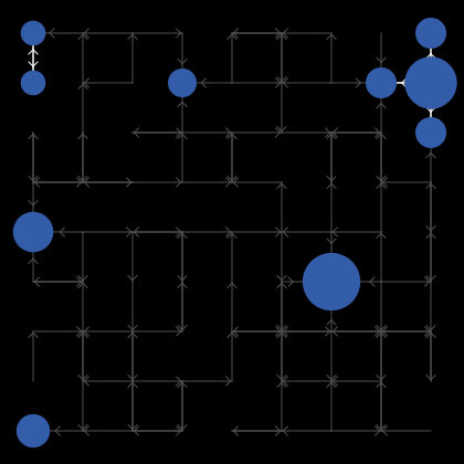 The size of each node shows how much "value" that node has, where the area of the node is proportional to its value. The brightness of a link represents how much value just flowed through that edge.
