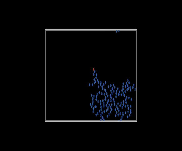 turtles-own [ ;; The easiest way to handle the clusters is to designate one ;; node in the cluster as the "leader". It doesn't really matter ;; which node it is; the choice is arbitrary, but it gives us a way ;; to identify the cluster. Every node knows who the leader of ;; its cluster is. leader ;; This is used to make all of the nodes in a cluster turn by ;; the same number of degrees. Each leader chooses a random ;; amount, then everyone else uses the amount from their leader. turn-amount ] to setup clear-all set-default-shape turtles "person" create-turtles population [ set color red setxy random-xcor random-ycor facexy 0 -16 ;; initially, every node leads its own cluster of one set leader self ] reset-ticks end to go ;; All the leaders choose turn amounts ask turtles with [leader = self] [ set turn-amount random 10 - random 10 ] ;; All nodes follow their leaders ask turtles [ ;;rt [turn-amount] of leader fd 0.1 ] ;; Here's the tricky part. We check whether any pairs ;; of clusters are touching, and if they are, we merge them. ask turtles [ let candidates turtles in-radius 1 with [leader != [leader] of myself] if any? candidates [ create-links-with candidates [ hide-link ] ask candidates [ merge ] ] ] tick end ;; This is a recursive procedure -- it calls itself. ;; That way the new leader propagates through the entire ;; cluster. to merge ;; node procedure ;; First this node merges. set leader [leader] of myself set heading [heading] of leader set color blue ;; Then any neighboring nodes that haven't merged yet ;; merge. ask link-neighbors with [leader != [leader] of myself] [ merge ] end ; Public Domain: ; To the extent possible under law, Uri Wilensky has waived all ; copyright and related or neighboring rights to this model.