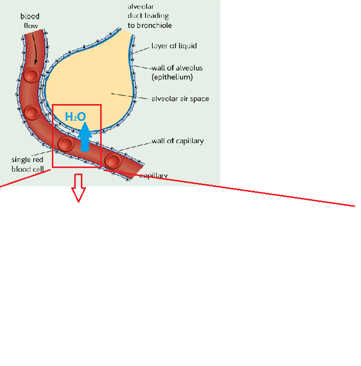 Although there are many factors/forces which influence fluid dynamics in the lung, for academic purpose these factors can be reduced to two main ones: (a) hydrostatic pressure (HP) in the vessels (i.e. pulmonary capillary), and (b) oncotic pressure (OP), due to the macromolecules, mainly albumin, in the blood. HP forces the fluid out, while OP keeps the fluid in the vessels. In this case the Starling equation can be reduced to the following: Q = k (HP-OP), where ‘k’ is membrane permeability (= const. in this model), and movement of water out of the vessels, leading to pulmonary edema, is greatly dependent on the balance of these two factors (i.e. an increase in HP over a physiologic norm/ threshold and (or) subnormal values of OP can cause fluid extravasation = pulmonary edema).