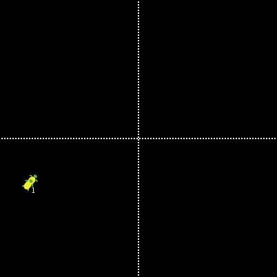 Al dar click en Go - Se empieza a mover la tortuga de acuerdo a un modelo de movimiento con aceleración constante en dos dimensiones - Se traza la trayectoria de la tortuga (si el usuario así lo eligió) - Se genera una tortuga roja en los puntos donde hay un cambio de dirección ya sea horizontal o vertical (si el usuario así lo eligió) - Se genera una tortuga verde en los puntos en que la tortuga se encuentre en reposo (si el usuario así lo eligió) - Cada 500 ticks se genera una tortuga amarilla para ir generando el diagrama de movimiento (si el usuario así lo eligió) - Se trazan las gráficas de las variables cinemáticas y se actualizan los monitores - Se detiene la simulación cuando la tortuga llega a una de las orillas del espacio, o cuando el usuario lo desee.