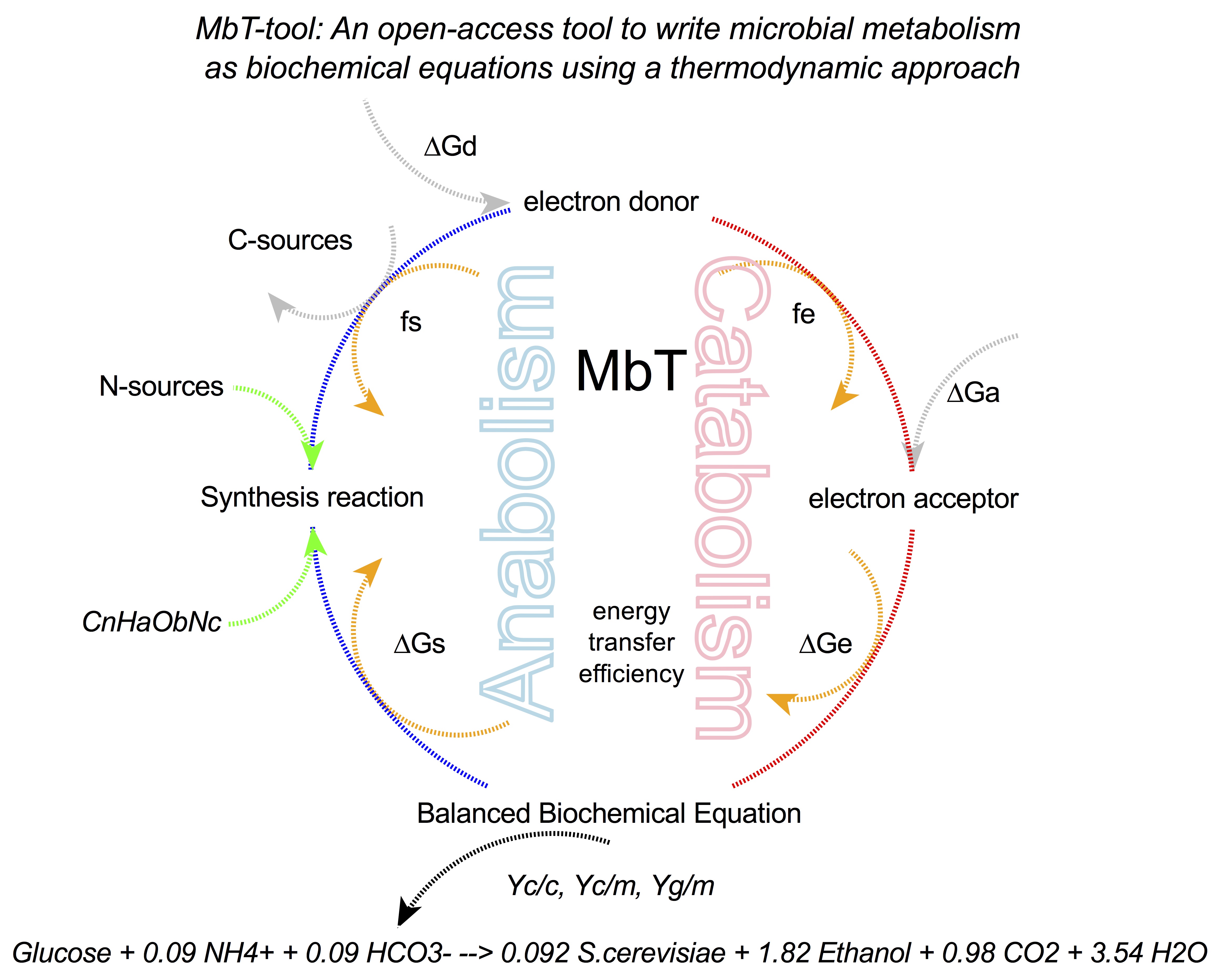 MbT-Tool. Microbial metabolism as biochemical equations based on thermodynamics: An open-access tool. Araujo P., Gras A. and Ginovart M. - 2016