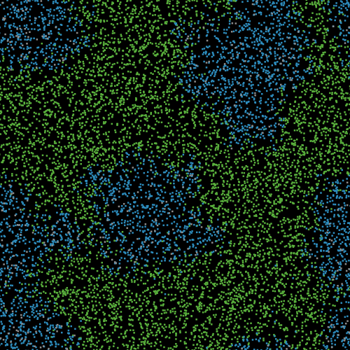 breed [suszeptible suszeptibles] breed [kranke krankes] breed [geheilte geheiltes] breed [tote totes] patches-own [viren] kranke-own [dauer] to setup clear-all setup-patches setup-suszeptible setup-kranke reset-ticks end to setup-patches ask patches [ set pcolor 0 set viren 0 ] end to setup-suszeptible create-suszeptible Individuen ask suszeptible [ setxy random-xcor random-ycor set color 55 set shape "circle" ] end to setup-kranke create-kranke 10 ask kranke [ setxy random-xcor random-ycor set color 15 set shape "circle" set dauer 14 ] end to go if ticks >= 360 [ stop ] ;; nach einem Jahr aufhören move-suszeptible move-kranke move-geheilte infiziere-umgebung klinge-ab stecke-dich-an werde-gesund-oder-stirb tick ;; Tage mitzählen end to move-suszeptible ask suszeptible [ right random 360 forward Beweglichkeit ] end to move-kranke ask kranke [ right random 360 forward Beweglichkeit set dauer dauer - 1 ] end to move-geheilte ask geheilte [ right random 360 forward Beweglichkeit ] end to infiziere-umgebung ask kranke [ set viren verseuchung ] end to klinge-ab ask patches [ if viren > 0 [ set viren viren - 1 ] ] end to stecke-dich-an ask suszeptible[ if random verseuchung < viren [ hatch-kranke 1 [ set color 15 set shape "circle" set dauer 14] die ] ] end to werde-gesund-oder-stirb ask kranke[ if dauer < 1 [ ifelse random 100 < sterblichkeit [ hatch-tote 1 [ set color 5 set shape "circle" ] ] [ hatch-geheilte 1 [ set color 95 set shape "circle" ] ] die ] ] end ;; to check-death ;; ask turtles [ ;; if energy <= 0 [ die ] ;; removes the turtle if it has no energy left ;; ] ;; end ;; to regrow-grass ;; ask patches [ ;; 3 out of 100 times, the patch color is set to green ;; if random 100 < 3 [ set pcolor green ] ;; ] ;; end ; Public Domain: ; To the extent possible under law, Uri Wilensky has waived all ; copyright and related or neighboring rights to this model.