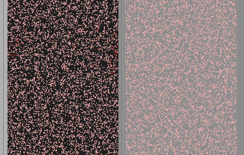 ;; this is the most up-to-date version globals [ regions ; a list of regions definitions, where each region is a list of its min pxcor and max pxcor ] breed [ blue-strains blue-strain ] breed [ red-strains red-strain ] ;;red-strains-own [red-resistance-cost] ;;blue-strains-own [blue-resistance-cost] ; removing cost of resistance as a paramter for now turtles-own [ resistant? energy mutation-rate cost-of-repair benefit? benefit-gain] ;; some variables that apply to both strains, ;resistance-cost removed patches-own [ region ; the region that the patch is in, patches outside all regions have region = 0 antibiotic ; ] to setup ; this procedure sets up the "world" into 2 different regions. It contains a few subprocedures described next clear-all setup-regions 2 color-regions ; Finally, distribute the turtles in the different regions setup-turtles if (resistance + lethal + metabolic-benefit) > 100.00 [user-message ("Mutation rates should not sum to more than 100%")] ; this message appears to warn users about mutation rate settings reset-ticks end to color-regions ;this subprocedure colors the regions ; The patches with region = 0 act as dividers and are ; not part of any region. All other patches get colored ; according to the region they're in. ask patches with [ region != 0 ] [ set pcolor 1 ;; what color is this - started at times 10 set plabel-color pcolor + 0 ;set plabel region check-antibiotic ] end to setup-turtles ; this subprocedure creates the strains foreach n-values length regions [ [?1] -> ?1 + 1 ] [ [?1] -> let region-patches patches with [ region = ?1 ] create-blue-strains initial-blue-strain-population [ move-to one-of region-patches if (count other turtles-here > 1) [move-to one-of region-patches] set shape "circle" set size 0.15 set color blue set resistant? false ;; they all start not resistant ;;if ( show-resistance? ) [ show-resistance ] set energy random blue-life-span ;;they all start out with some amt of energy - a random value between 0 and blue-life-span set mutation-rate blue-mutation-rate set benefit? false ; they all start without beneficial mutations ] create-red-strains initial-red-strain-population [ move-to one-of region-patches set shape "circle" set size 0.15 set color red set resistant? false ;; they all start not resistant ;;if ( show-resistance? ) [ show-resistance ] set energy random red-life-span ;;they all start out with some amt of energy set mutation-rate red-mutation-rate set benefit? false ] ] end to go every 0.1 [ ; can be manipulated to make things happen faster ask turtles [ ; below are the things turtles do every half tick move ; see details under this procedure metabolize ; see details under this procedure mutate ; see details under this procedure if ( count other turtles-here > 20) [ die ] ;; this is where carrying capacity is specified at the moment if ( [antibiotic] of patch-here = true and not resistant? ) [ die ] ;; womp womp...notice antibiotic is 100% lethal if (energy <= 0) [die] ;; so tired... reproduce ;; see details under this procedure ;;if ( show-resistance? ) [ show-resistance ] ;if ( show-benefit?) [show-benefit] ;; obviously ;set-resistance-values ;] ; ifelse (resistant?) ; [ ; if cost-of-resistance = "high" [set resistance-cost 5] ; if cost-of-resistance = "low" [set resistance-cost 2] ; if cost-of-resistance = "none" [set resistance-cost 0] ; ] ; [set resistance-cost 0] show-resistance ] check-antibiotic ; this checks the status of the antibiotic so that it can be changed mid run check-mutation-rates ; this checks to see if the mutation rate has been changed mid-run if ( count turtles = 0 ) [ stop ] ; the simulation stops if all the turtles die update-plots display ;if vid:recorder-status = "recording" [ vid:record-interface ] tick ] end to move ; turtle procedure ; First, save the region that the turtle is currently in: let current-region region ; Then, after saving the region, we can move the turtle: right random 30 left random 30 forward 0.25 ; Finally, after moving, make sure the turtle ; stays in the region it was in before: keep-in-region current-region end to check-mutation-rates ask red-strains [if red-mutation-rate != mutation-rate [user-message ("You cannot change the mutation rate in the middle of a run. Restart the model!")]] ask blue-strains [if blue-mutation-rate != mutation-rate [user-message ("You cannot change the mutation rate in the middle of a run. Restart the model!")]] end to show-resistance ;; turtle procedure that colors bacteria to show resistance ifelse resistant? [ifelse (breed = red-strains) [ set color red + 3] [set color blue + 3]] ; if resistant set to lighter colors [ifelse (breed = red-strains) [ set color red ] [set color blue]] ; otherwise keep original colors end to show-benefit ;; turtle procedure that colors bacteria to show resistance ifelse benefit? [ifelse (breed = red-strains) [ set color yellow] [set color green]] ; if resistant set to lighter colors [ifelse (breed = red-strains) [ set color red ] [set color blue]] ; otherwise keep original colors end to mutate ;; turtle procedure if random-float 100 < mutation-rate [ ;; random float chooses a number between 0-100. If that number is less than mutation-rate (set by a slider on the interface) then... if random-float 100 < resistance ;; roll the resistant dice (this used to be ifelse for some reason) [ ;; this is the if part if ( not resistant? ) [ ;; toggle the resistance set resistant? true ] ;; YOUR POISON IS FUTILE!! ;[set resistant? false] ;[ if random-float 100 < 20 [set resistant? false ] ;] ;; back mutations set to 20% ] ;this is the else part if random-float 100 < lethal [ ;; roll the lethal dice...switch the greater than to less than die ;; end of the line :( ] ifelse benefit? [set benefit-gain random 2] [set benefit-gain 0] ; make this a random value - this specifies the value of benefit from beneficial mutation if random-float 100 > ( 100 - metabolic-benefit) [if ( not benefit?) [set benefit? true] ] ] end to metabolize ;; tu
