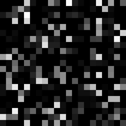 In this model, we have a 21 by 21 grid of squares, each of which is assigned an initial random "activity" value. These squares could represent cities, and the activity value could express populations. Or the squares could represent corporations, with the activity values being market share or profits. This model is merely demonstrating the basic mathematical concept, so the particular analogy to real-world phenomena is not important.