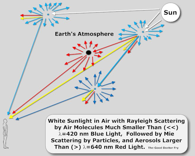 All code written by A Bedouch. Rayleigh scattering illustration from wikimedia