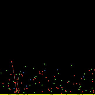 Because of the influence of gravity, the particles follow curved paths. Since NetLogo models time in discrete steps, these curved paths must be approximated with a series of short straight lines. This is the source of a slight inaccuracy where the particles gradually lose energy if the model runs for a long time. The effect is as though the collisions with the ground were slightly inelastic. The inaccuracy can be reduced by increasing vsplit, but the model will run slower.