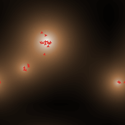 extensions [ r ] globals [ is-life? ;; distinguish between the two demos ;; LIFE cell-count ;; total number of cells total ;; total number of live cells history ;; list of totals ;; BACTERIA window ;; number of steps over which to analyse ] patches-own [ ;; LIFE alive? ;; is cell alive? counter ;; used to pass number of live neighbours between Phase 1 and Phase 2 ;; BACTERIA value ;; simulated chemical concentration ] turtles-own [ ;; BACTERIA hist ;; history of concentration values ] to rplot-graph ;; R interface -- plot the LIFE history if (is-life?) [ r:put "life.hist" history r:put "plotfile" life-plot-filename r:eval "png (filename = plotfile, width = 1600, height = 800, pointsize=18)" r:eval "par (mar=c(5,5,0.8,0.5))" r:eval "xs <- 0:(length(life.hist)-1)" r:eval "plot (life.hist ~ xs, type=\"l\", lwd=4, col=\"red\", xlab=\"Step\", ylab=\"Density\", ylim=c(0,max(life.hist)), cex.lab=2, cex.axis=1.5)" r:eval "dev.off()" ] end to-report calculate-slope [ lst ] ;; R interface -- calculate slope for values in lst r:put "valu.hist" lst r:eval "valu.index <- 1:length(valu.hist)" r:eval "valu.lm <- lm(valu.hist ~ valu.index)" report r:get "valu.lm$coefficients[2]" end ;; code for SETUP button -- Life to setup-life clear-all set is-life? true set life-plot-filename "C:/NetLogo/Life_plot.png" set cell-count (count patches) ask patches [ ifelse (random-float 1 < average-life-density) [birth] [death] ] reset-ticks set history (list (total / cell-count)) end to death ;; this procedure applies to a specific patch set alive? false set pcolor white end to birth ;; this procedure applies to a specific patch set alive? true set pcolor blue set total (total + 1) end ;; code for SETUP button -- Bacteria to setup-bacteria clear-all set is-life? false set life-plot-filename "** NOT USED **" set window 4 ;; create gradient repeat 3 [ let x random-xcor let y random-ycor let v (0.1 + random-float 0.5) let r (1 + v * world-width / 2) ask patches [ let d ((distancexy x y) / r) set value (value + v * exp (- d)) ] ] let min-value (min ([value] of patches)) let max-value (max ([value] of patches)) ask patches [ set pcolor (30 + (9.9 * (value - min-value) / (max-value - min-value))) ] ;; create some bacteria crt 20 [ setxy random-xcor random-ycor set color red set size 6 set hist (list value) ] reset-ticks end to go ;; single simulation step for both demos if-else (is-life?) [ ;; LIFE ;; First phase ask patches [ set counter (count neighbors with [alive?]) ] ;; Second phase set total 0 ask patches [ ifelse (counter = 3 or (counter = 2 and alive?)) [ birth ] [ death ] ] set history (lput (total / cell-count) history) ;; Record current density tick ] [ ;; BACTERIA ask turtles [ fd 1 set hist (lput value hist) if (length(hist) > window) [ set hist (bf hist) ] if (length(hist) = window) [ if (calculate-slope hist <= 0) [ set heading (random-float 360) set hist (list value) ] ] ] tick ] end