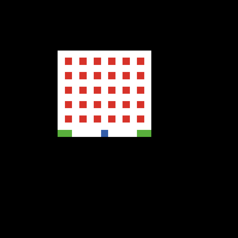 Students are able to sit in red patches. Learning assistants are able to sit in green patches. Instructors are able to lecture from blue patches. Asiles (white patches) are intended to be the only places LAs and instructors can move, however this is for later spacially realistic models.
