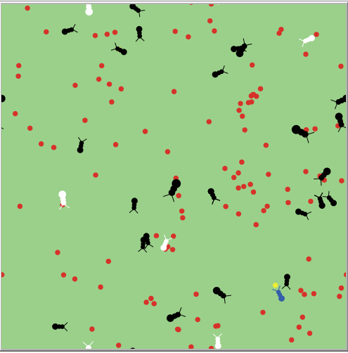 • Larger size allows bugs to eat smaller sized bugs (possible when double the size of another bug) which effectively supplies the environment with more possible food. Larger size also comes with a higher cost of energy.