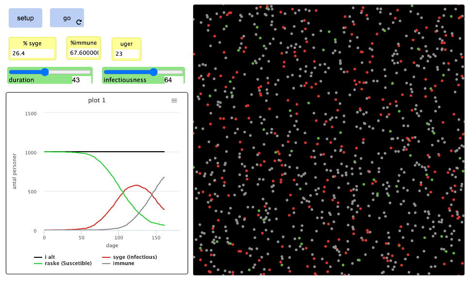 1) Man kan afprøve de forskellige skydere og se hvordan de påvirker udviklingen i antal syge, immune osv.